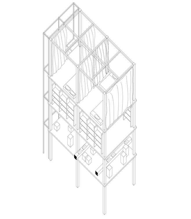 The installation Chamber sees the so-called ruins of Odeón as a performative archive itself. Opposing the idea and strategy of “preservation” and replacing it with the idea of performance and strategizing an enabling body. It contemplates the conditions and performances of artistic production and exposition through stressing the notion of ‘praxis’. Placed on the beams of the ruined amphitheater, it discusses bodily and spatial practices of inhabitation through a three-leveled elemental structure framing: collectivity, knowledge, and comfort.