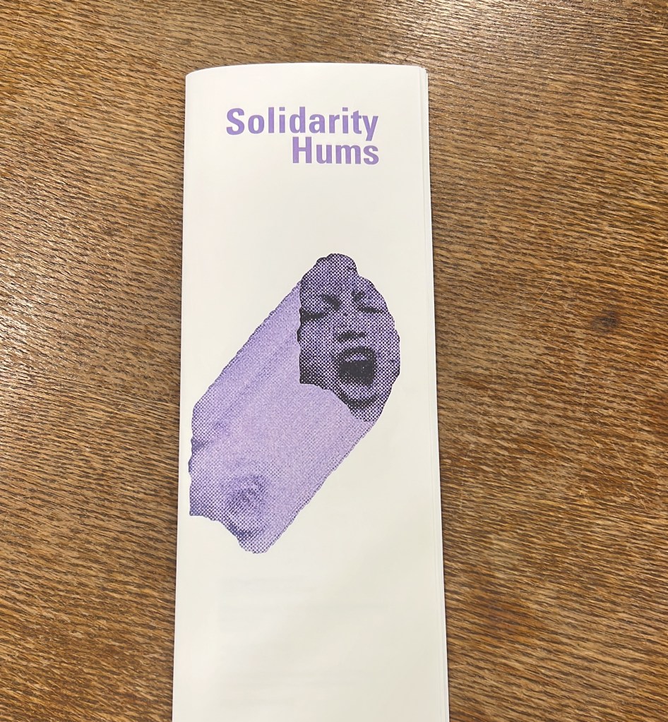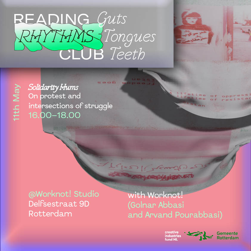 Invited by Reading Rhythms Club, on Saturday May 11th we held a collective reading of our text “Solidarity Hums” that reflects on the physical and metaphorical implications of chanting together, becoming megaphones, letter writing, wall tagging and other tools of solidarity and amplifying each other’s voices. We discussed the intersections between different struggles for justice and how these links often get obfuscated by media narratives that focus on short-term urgencies and render them isolated. Together, we collected chants and reflected on the rhetorics that call into question what is considered a struggle and what not, while foregrounding the necessity of feminist solidarity.